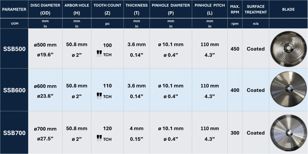 Experience outstanding cutting performance with our circular saw blades, specifically designed for steel cutting applications. Available in a range of sizes from 500 mm (19.6”) to 700 mm (27.5”), our blades ensure precision and durability for your toughest cutting tasks.