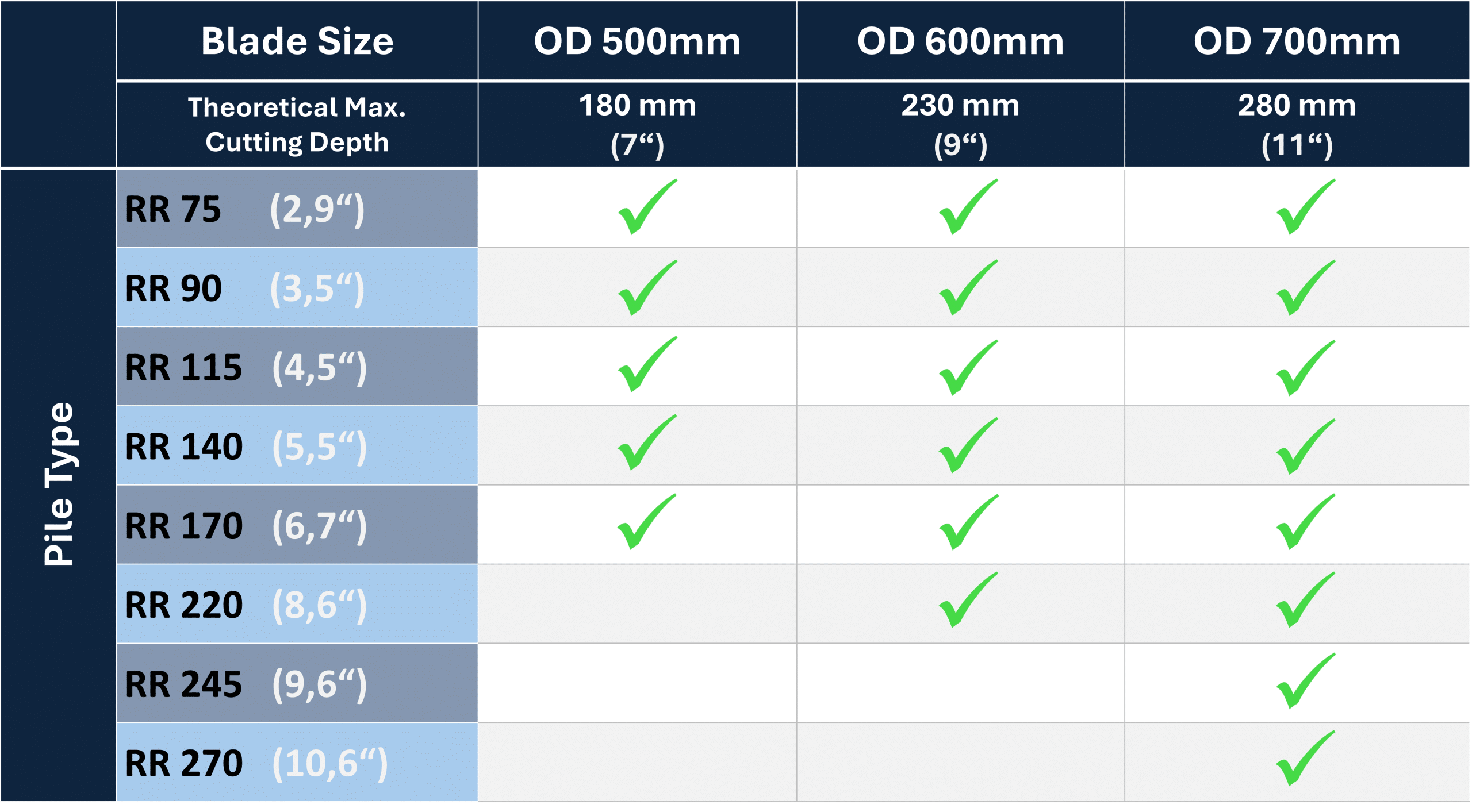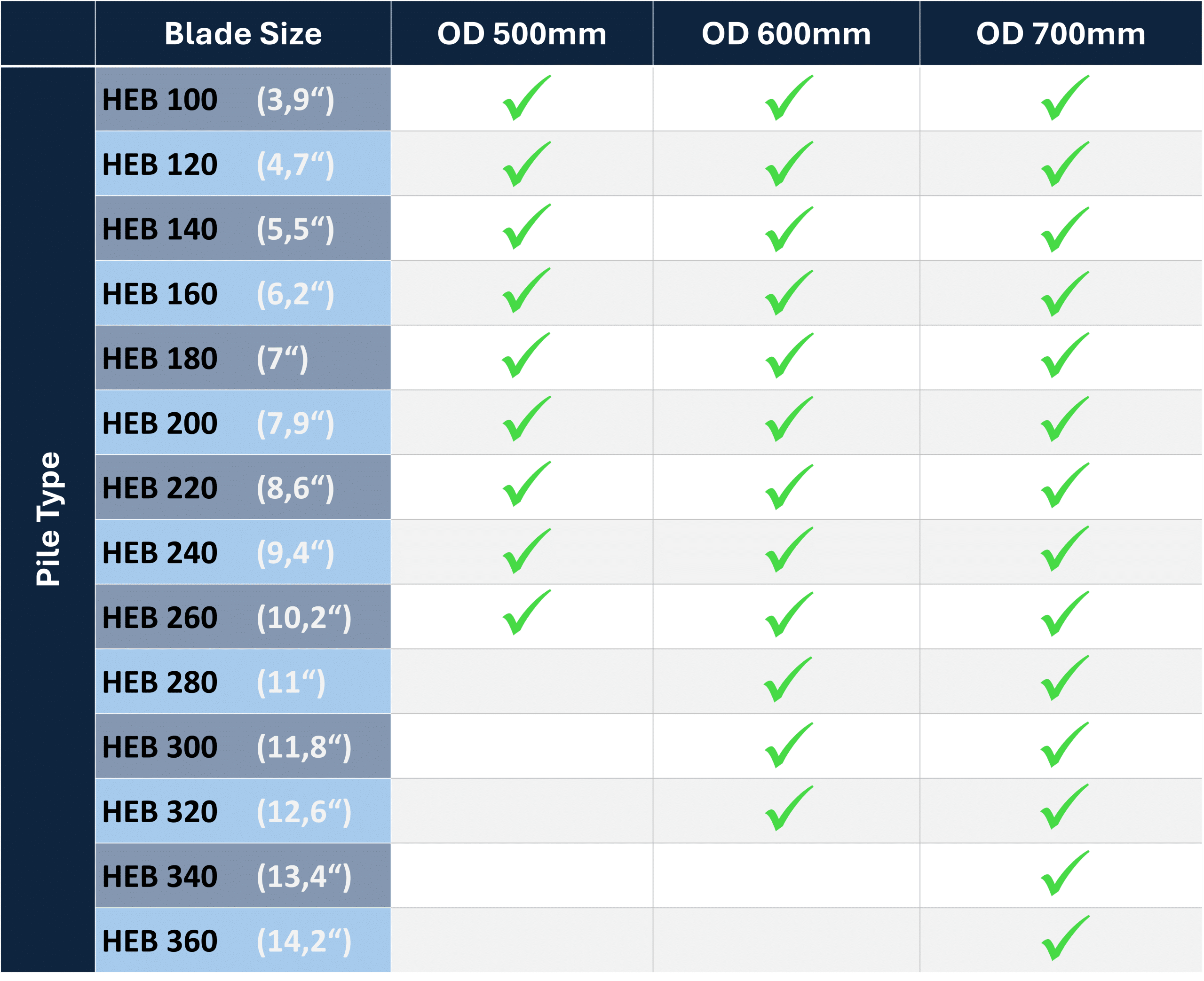 Suitable Pile Size Range: