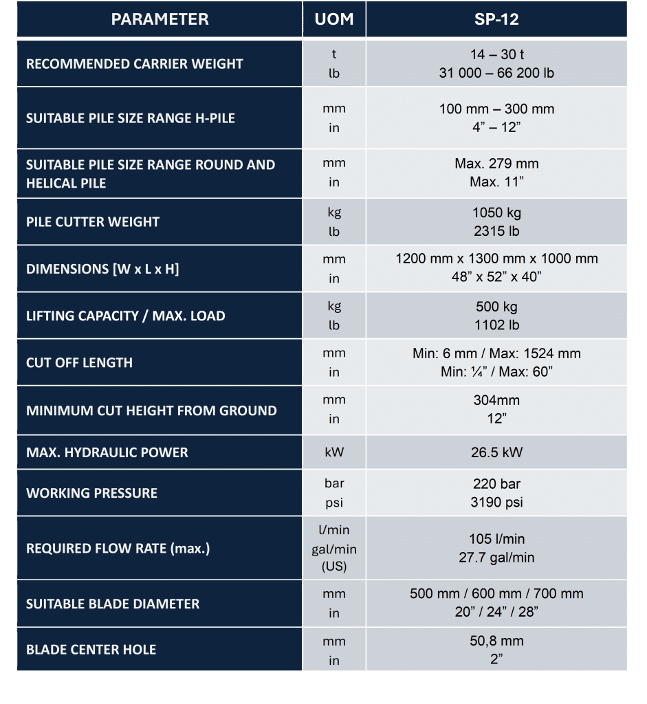 Recommended carrier weight: 6,5 – 20t